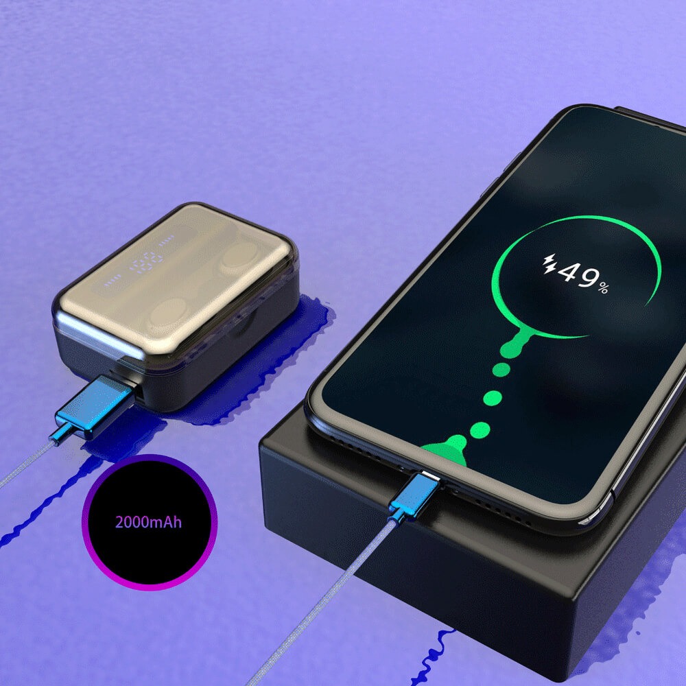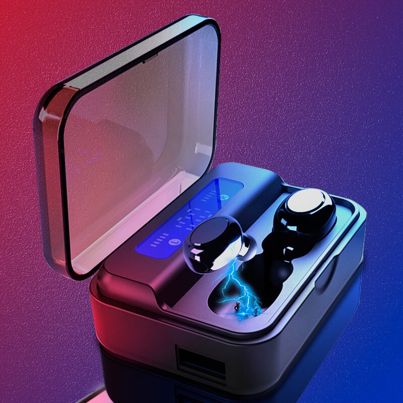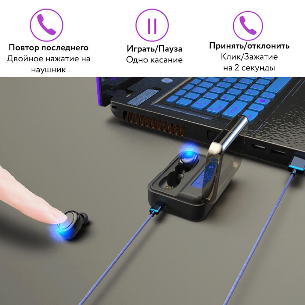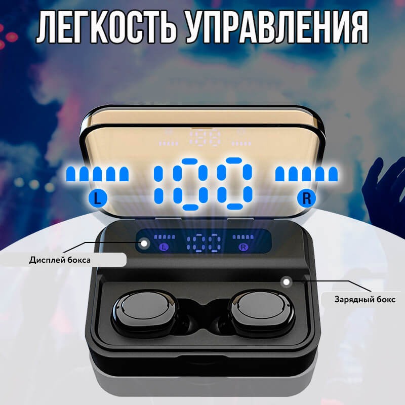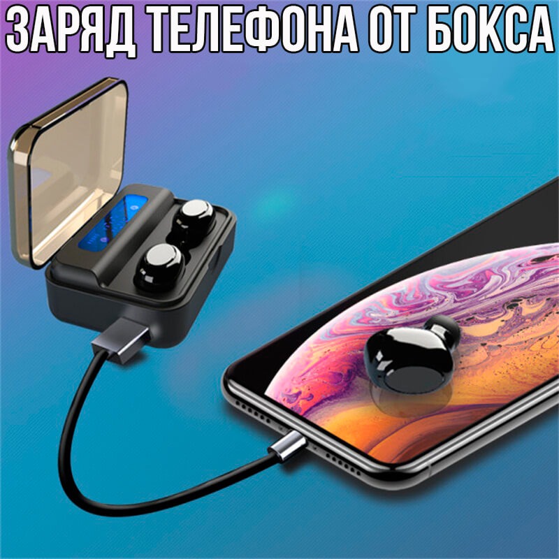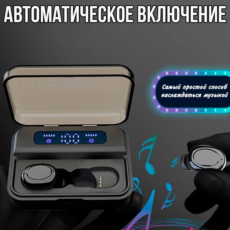 Беспроводные наушники с красочным светодиодным дисплеем зарядки поможет легко следить за уровнем зарядки самого зарядного бокса и каждого наушника, а также подарит Вам: удобство использования, привычный способ управления и надежныq помощник в прослушивании музыки, занятий спортом, и другими повседневными делами. И одним из преимуществ данной модели наушников станет объемный зарядный бокс, который послужит в критический момент павербанком для вашего смартфона.