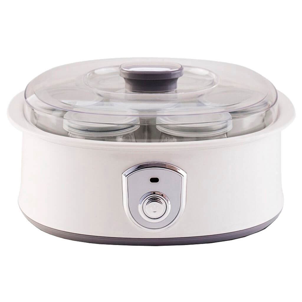 Замечательное устройство позволит приготовить множество рецептов вкусного и полезного йогурта. Натуральный йогурт, который вы приготовили собственноручно куда лучше и полезнее йогурта, который продается в магазинах, ведь они не содержат консервантов, различных вкусовых и ароматических добавок. Стильный современный дизайн корпуса йогуртницы, который изготовлен из нержавеющей стали, прекрасно гармонирует с интерьером вашей кухни. В комплекте 7 стеклянных чашек для йогурта с функцией установлениясрока годности на крышечках