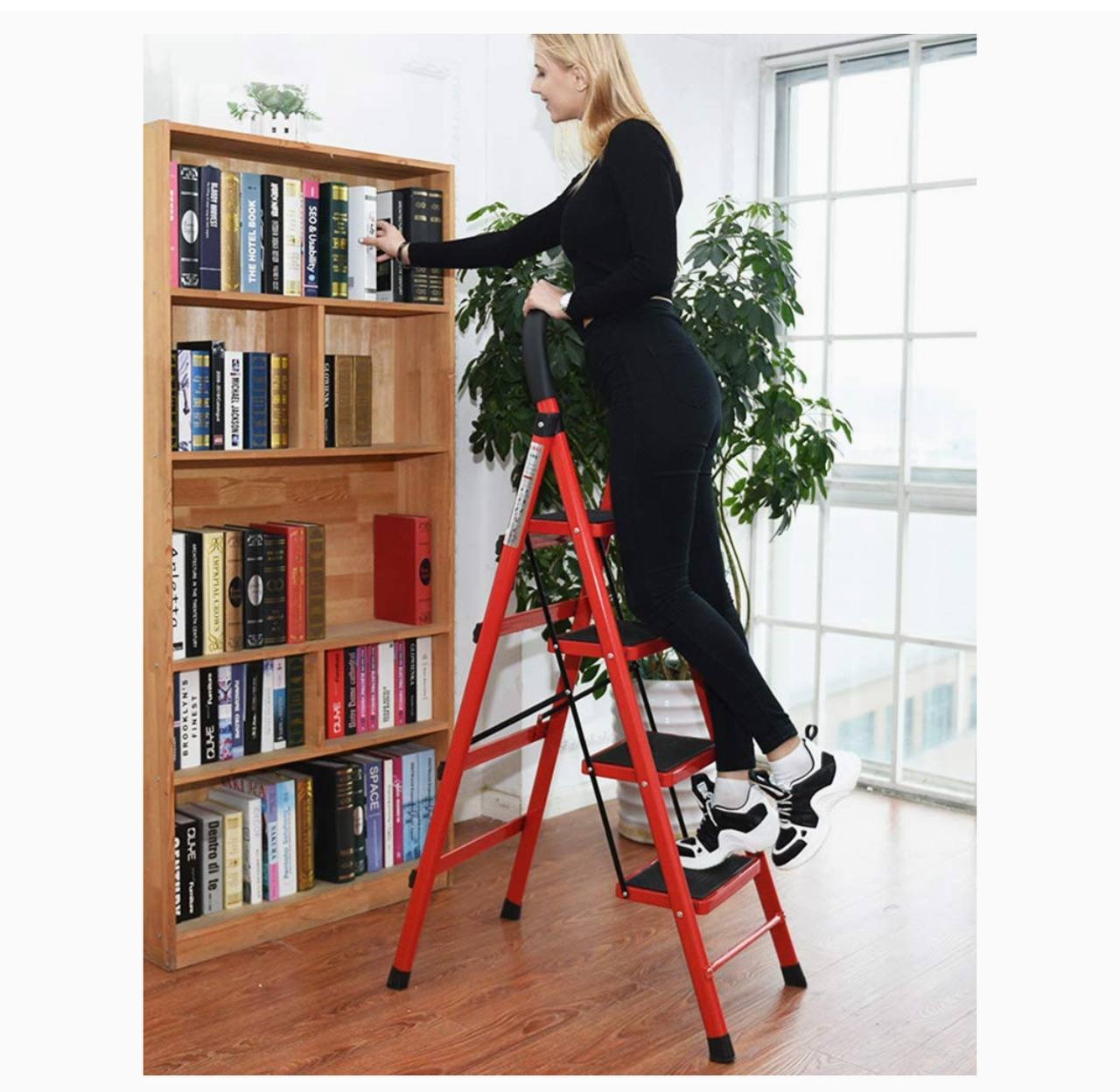 Параметр Описание Тип изделия: Складная лестница-стремянка Материал: Металлический корпус Число ступеней: 4 шт. Предельная нагрузка: До 150 килограммов Полная высота: 140 см Высота до верхней ступени: 90 см Размер ступеней по ширине: 25 см Противоскользящая поверхность: Да, предусмотрена Конструкция: Складывающаяся Вес: В пределах 6–7 кг Цветовое исполнение: Чёрно-серебристая гамма ![]()