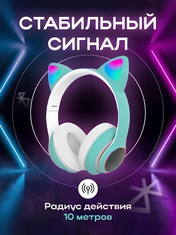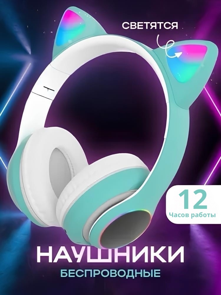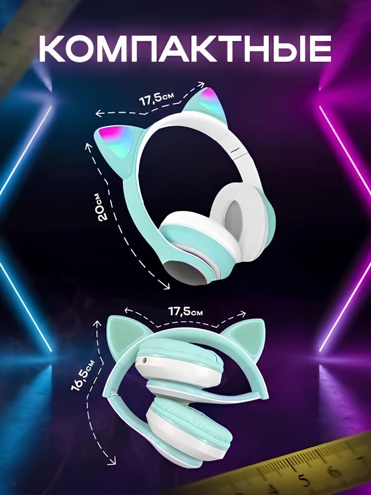 Беспроводные наушники с кошачьими ушками Бирюзовые