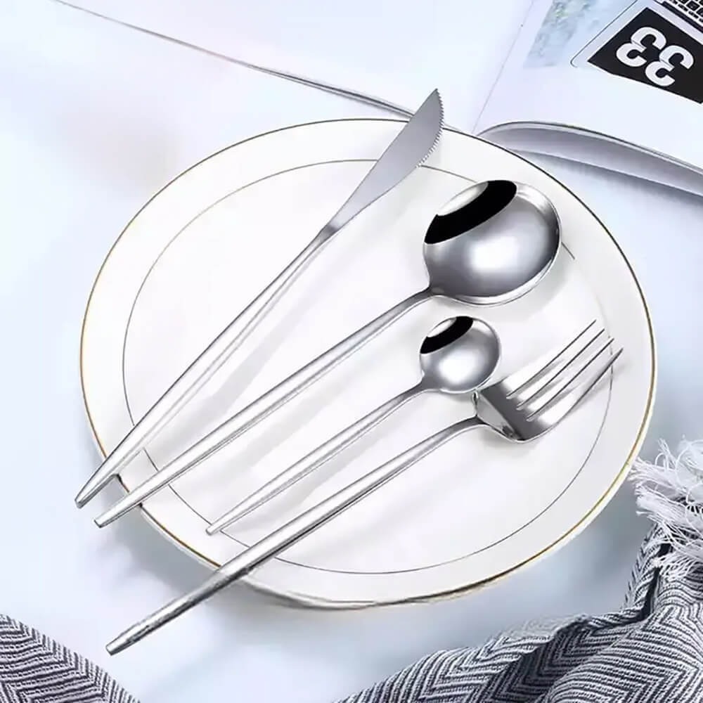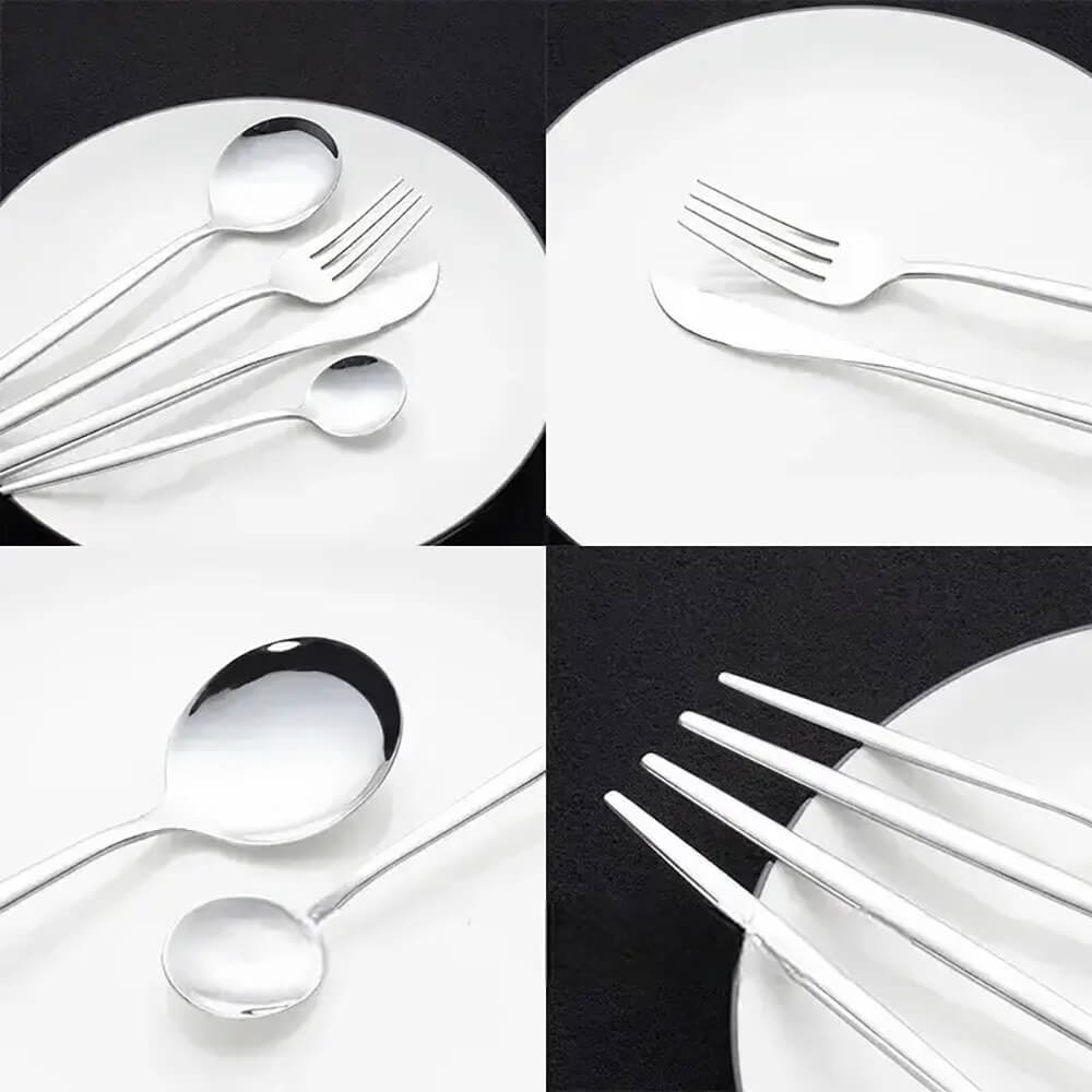 Столовая посуда изготовлена из высококачественной нержавеющей стали, прочная и долговечная, устойчивая к ржавчине. Можно мыть в посудомоечной машине.