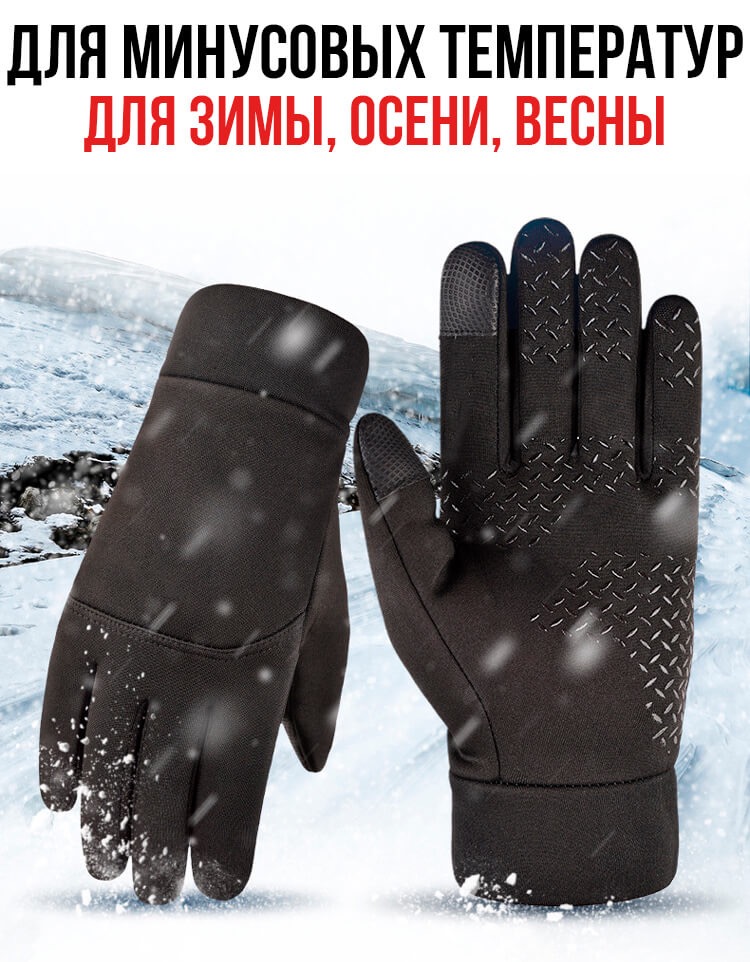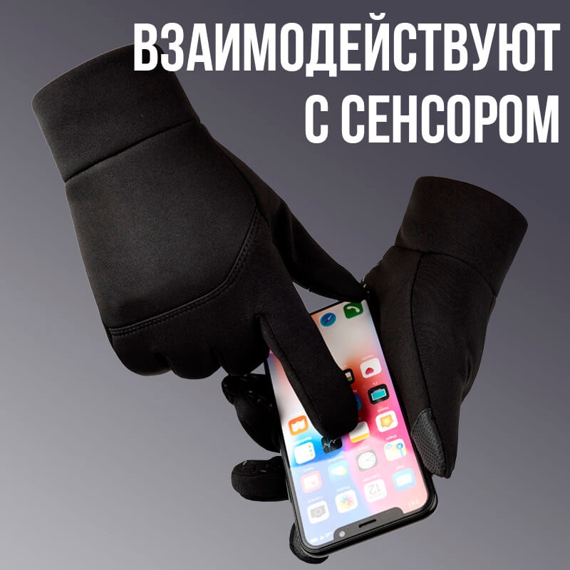 Непродуваемые перчатки зимние флисово-неопреновые Windproof Touch со спец-покрытием средних, указательных и больших пальцев на обеих руках для управления сенсорными экранами планшетов и смартфонов.