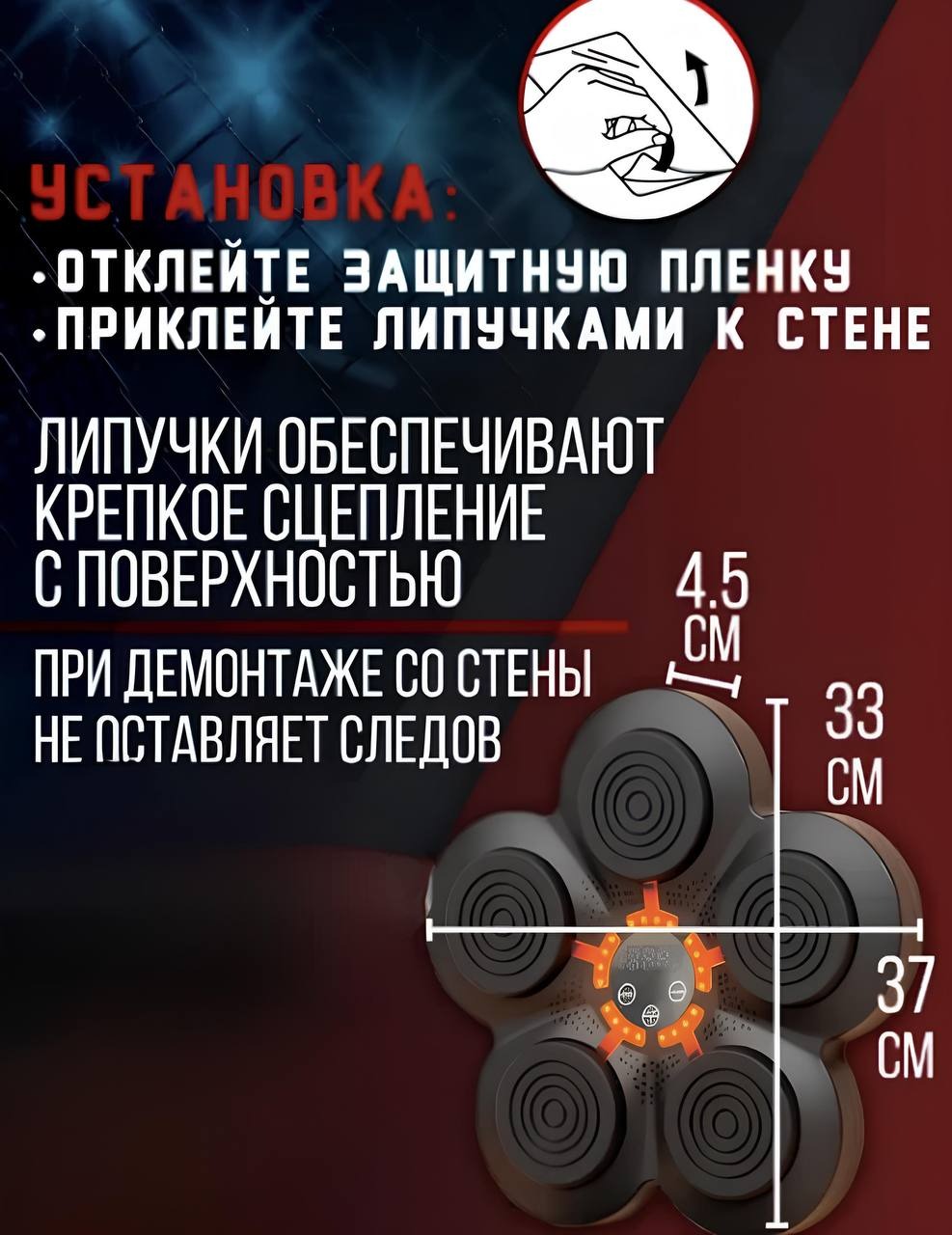 Бокс стеная мишень 40 см, 5 целей, музыка, перчатки – для тренировок дома