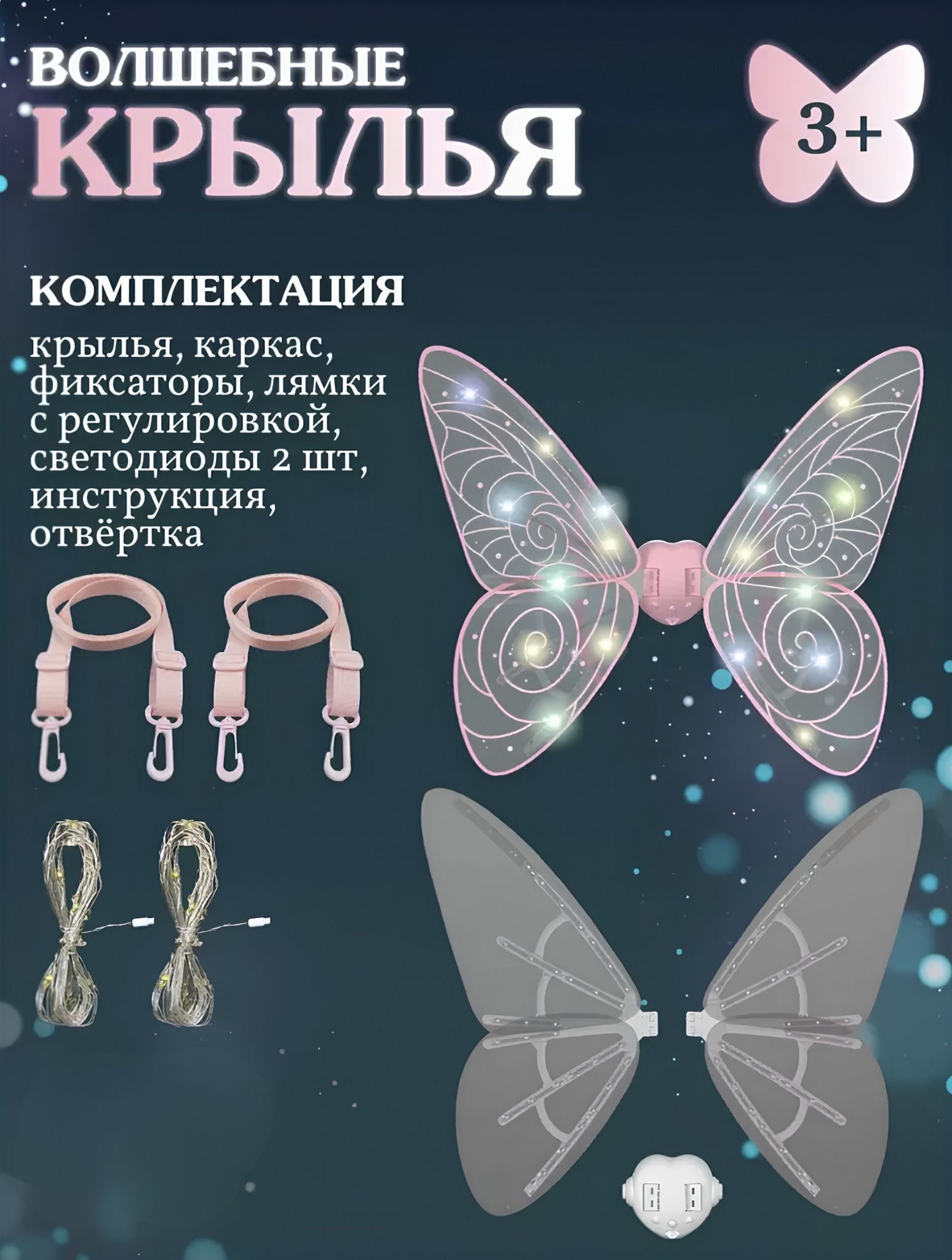 Волшебные розовые крылья феи с подсветкой, отлично подходят для вечеринок и детских праздников.