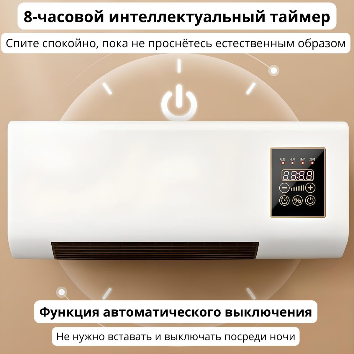 Встроенный таймер позволяет установить автоматическое выключение, а дисплей отображает текущий режим.