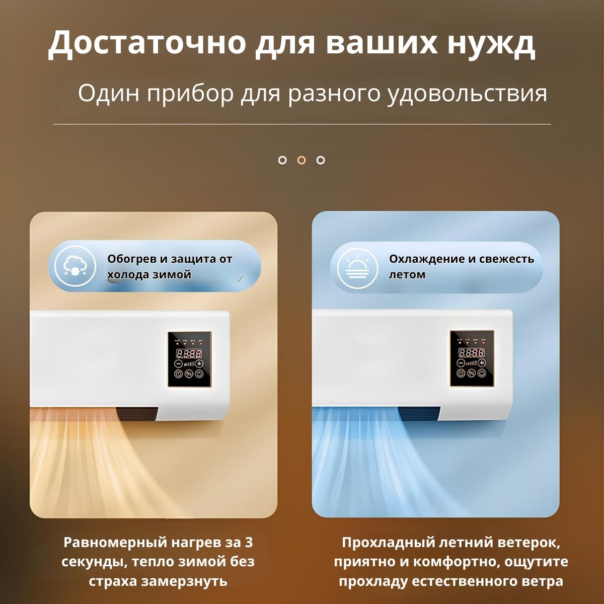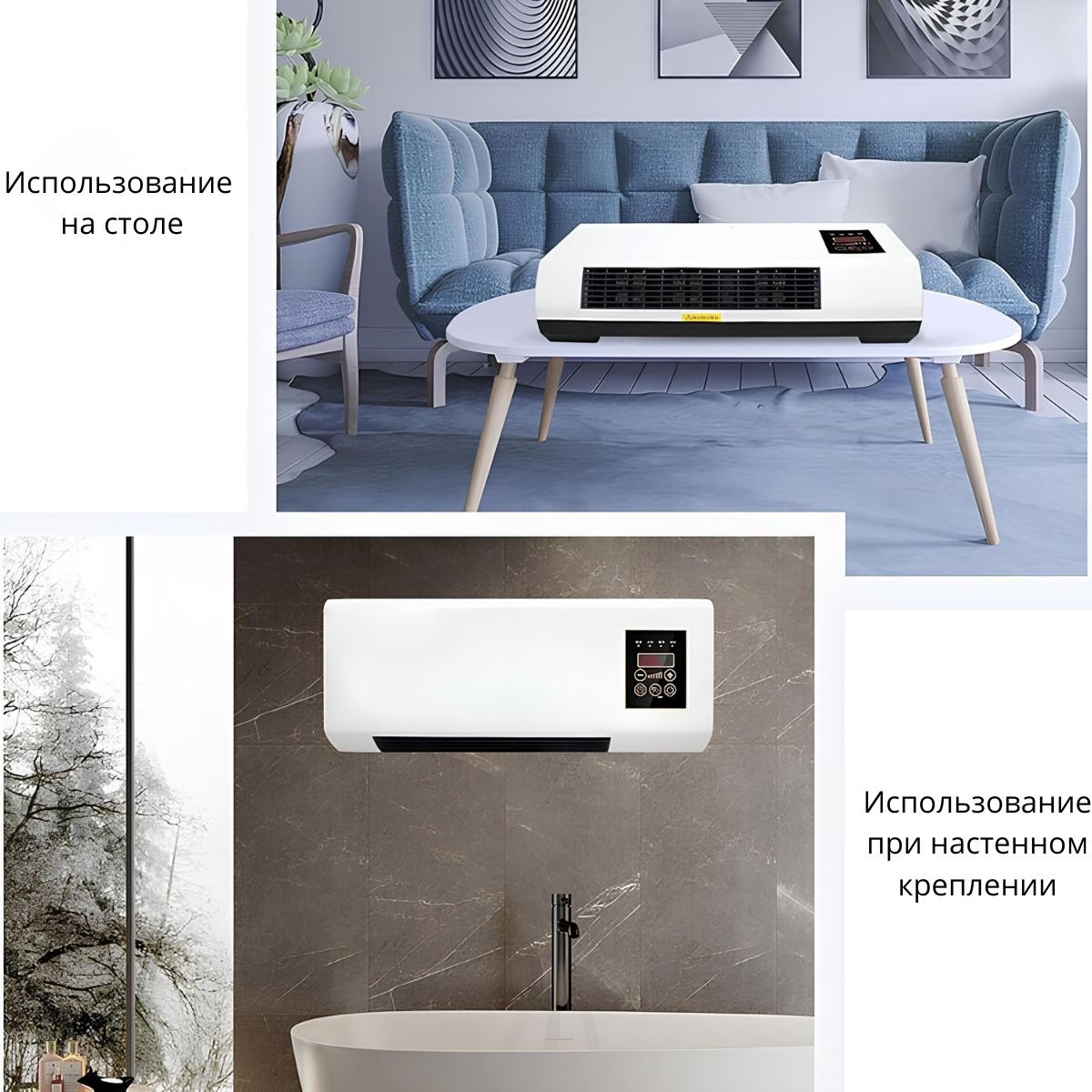 Компактная настенная конструкция экономит место, а пульт дистанционного управления делает использование максимально удобным.Устройство имеет три режима работы: обогрев, вентиляция без нагрева и комбинированный режим.