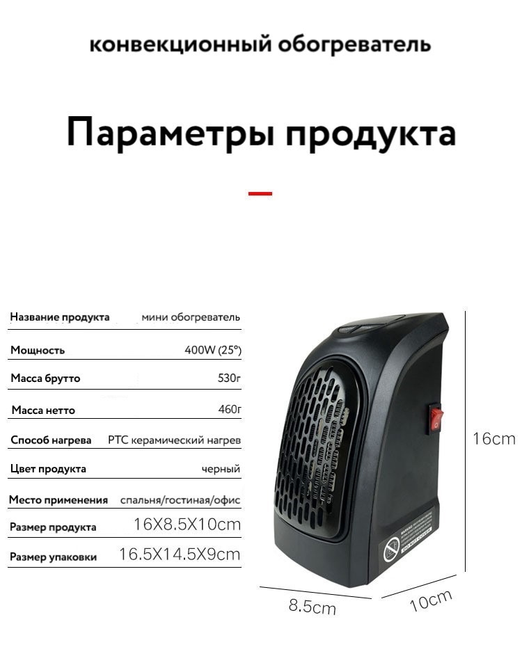 | Комплектация | Портативный мини обогреватель Handy Heater, руководство пользователя, заводская упаковка |