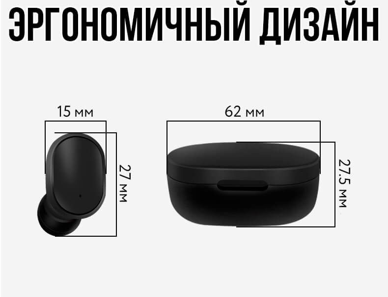 Благодаря функции шумоподавления, звук ясный и чистый. Динамики с сильным басом приведут в восторг любого меломана. Эта модель наушников необычайно портативна. Её размеры всего 1,5 см х 2,7 см Зарядный бокс имеет размеры 6,2 см х 2,75 см
