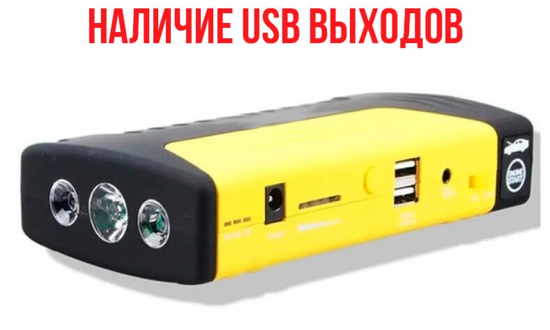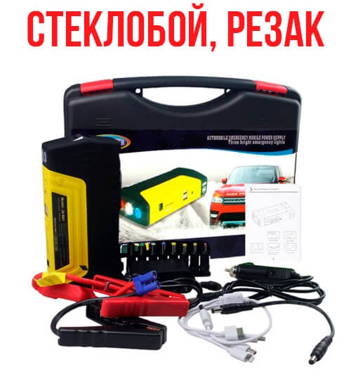 | Возможности | Запуск двигателей автомобилей, мотоциклов, катеров; зарядка портативных устройств (телефонов, планшетов, ноутбуков и др.); диодный фонарик; стеклобой; резак |