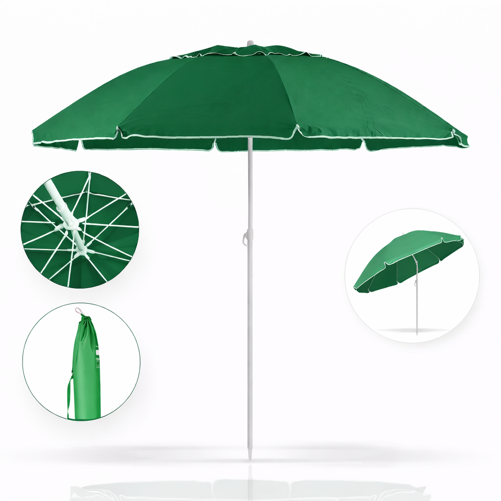 Зонт диаметром 2,5 м обеспечивает надежную защиту от солнца во время отдыха на пляже или на природе. Легкий и удобный в транспортировке, быстро раскладывается и не занимает много места. Подходит для кемпинга, рыбалки и отдыха на открытом воздухе.