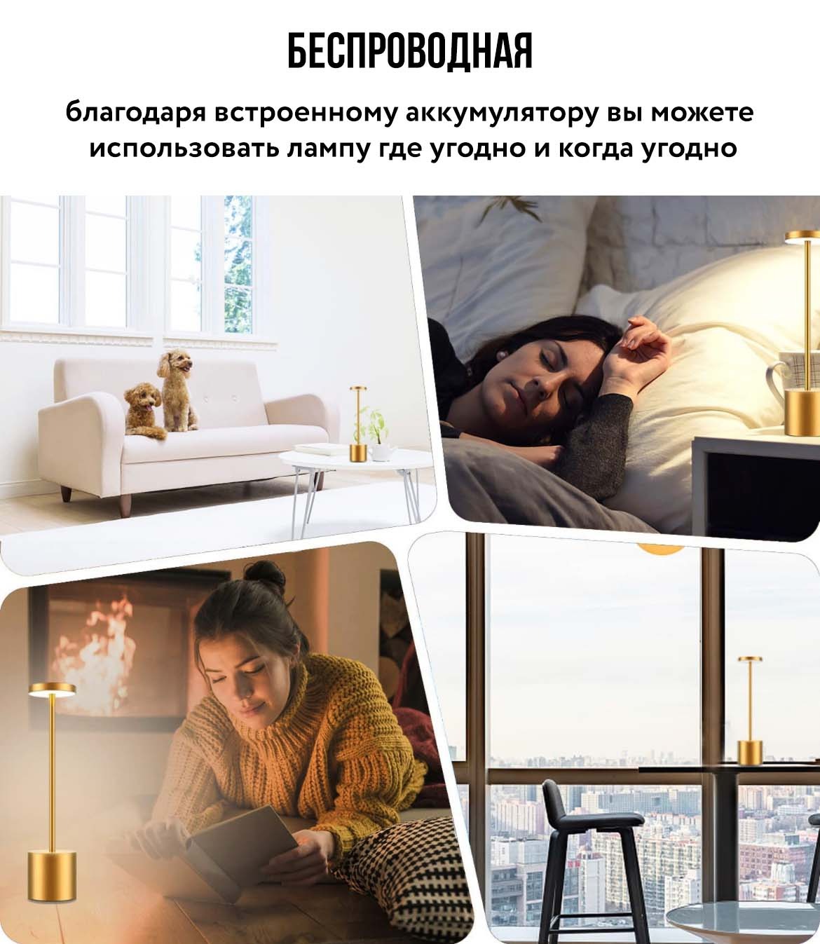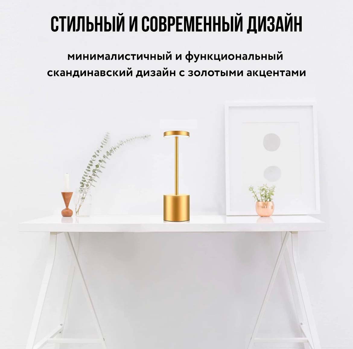 Минималистичная настольная лампа эффектно подсветит ваше пространство. Благодаря встроенному аккумулятору, вы можете разместить лампу в любом месте: в спальне, кабинете, офисе, гостинной, столовой, кафе, гостиничных номерах и т.д.