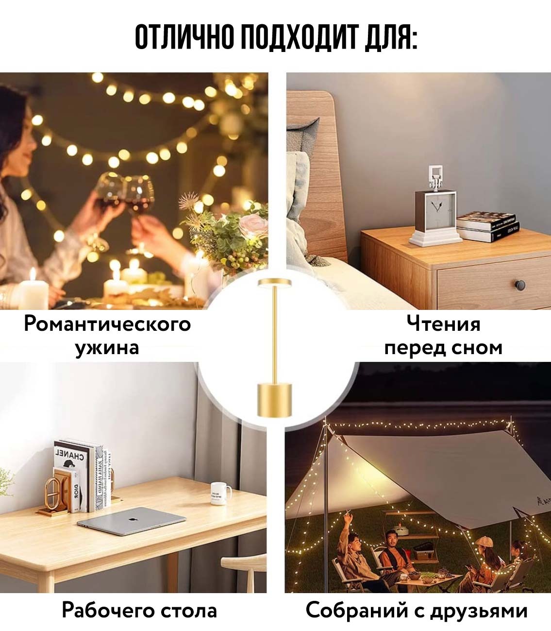 | Функции | Сенсорное управление, 3 режима яркости, 360 градусов освещения, низкое энергопотребление |