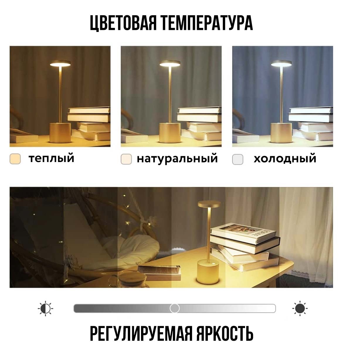 | Наименование товара | Аккумуляторная настольная LED лампа с сенсорной кнопкой включения и 3 режимами яркости |