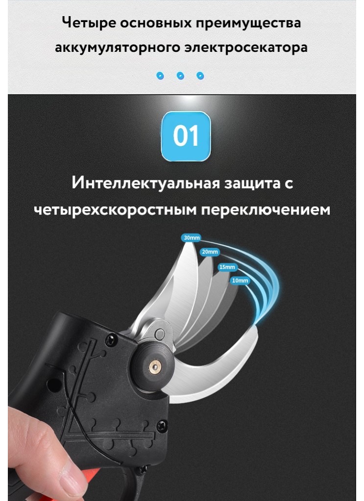 | Комплектация | Электросекатор, аккумулятор, блок питания, пластиковый кейс |