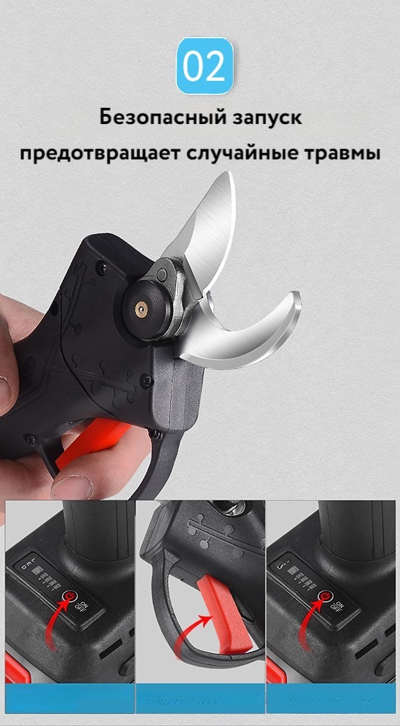 Такой инструмент пригодится как профессиональным садоводам, так и обычным дачникам для облегчения труда. Питание от аккумулятора от 220В. Блок питания уходит в комплекте. Вилка европейского стандарта.