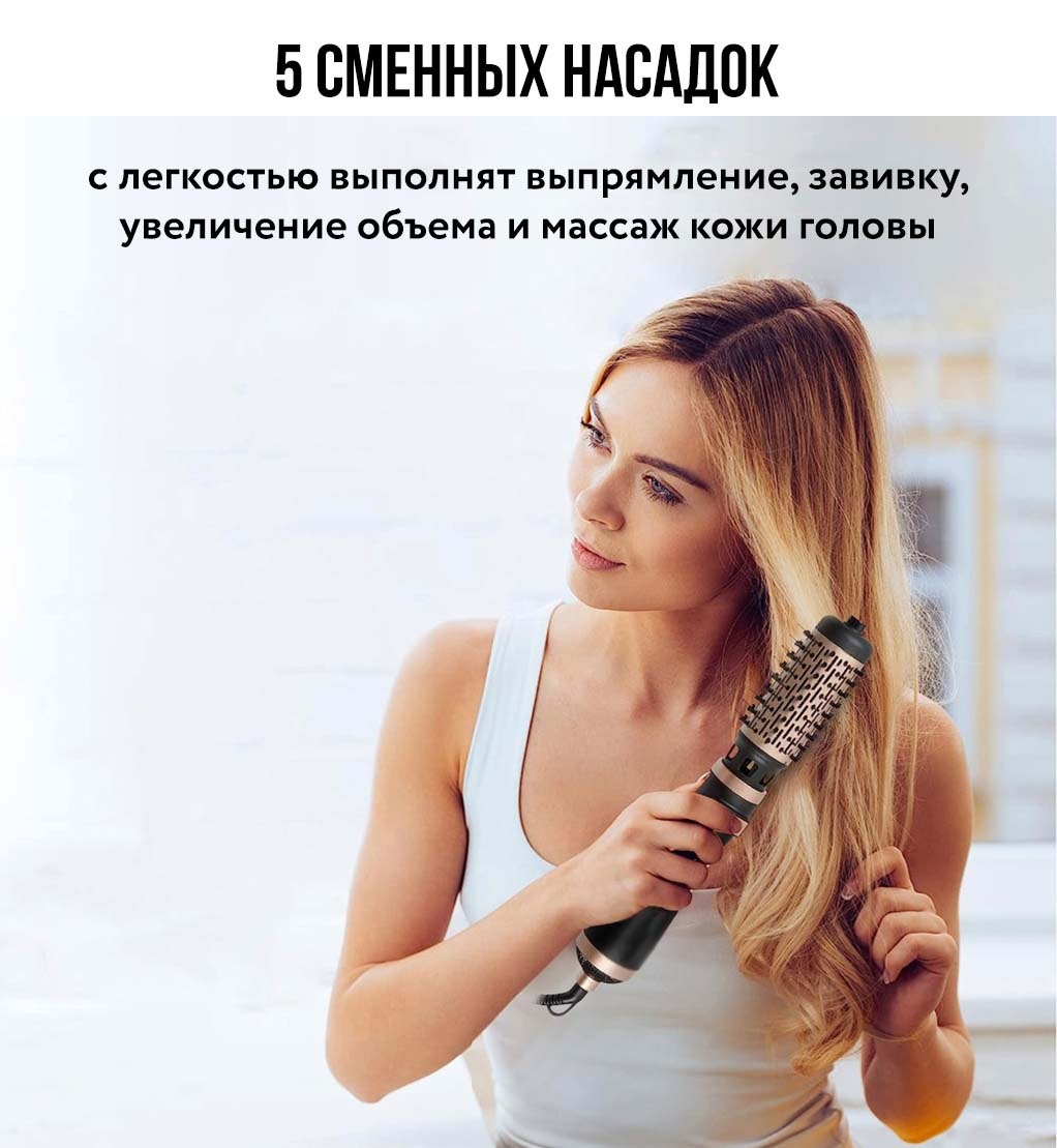 Стайлер для волос с вращающейся щеткой. 5 разных насадок