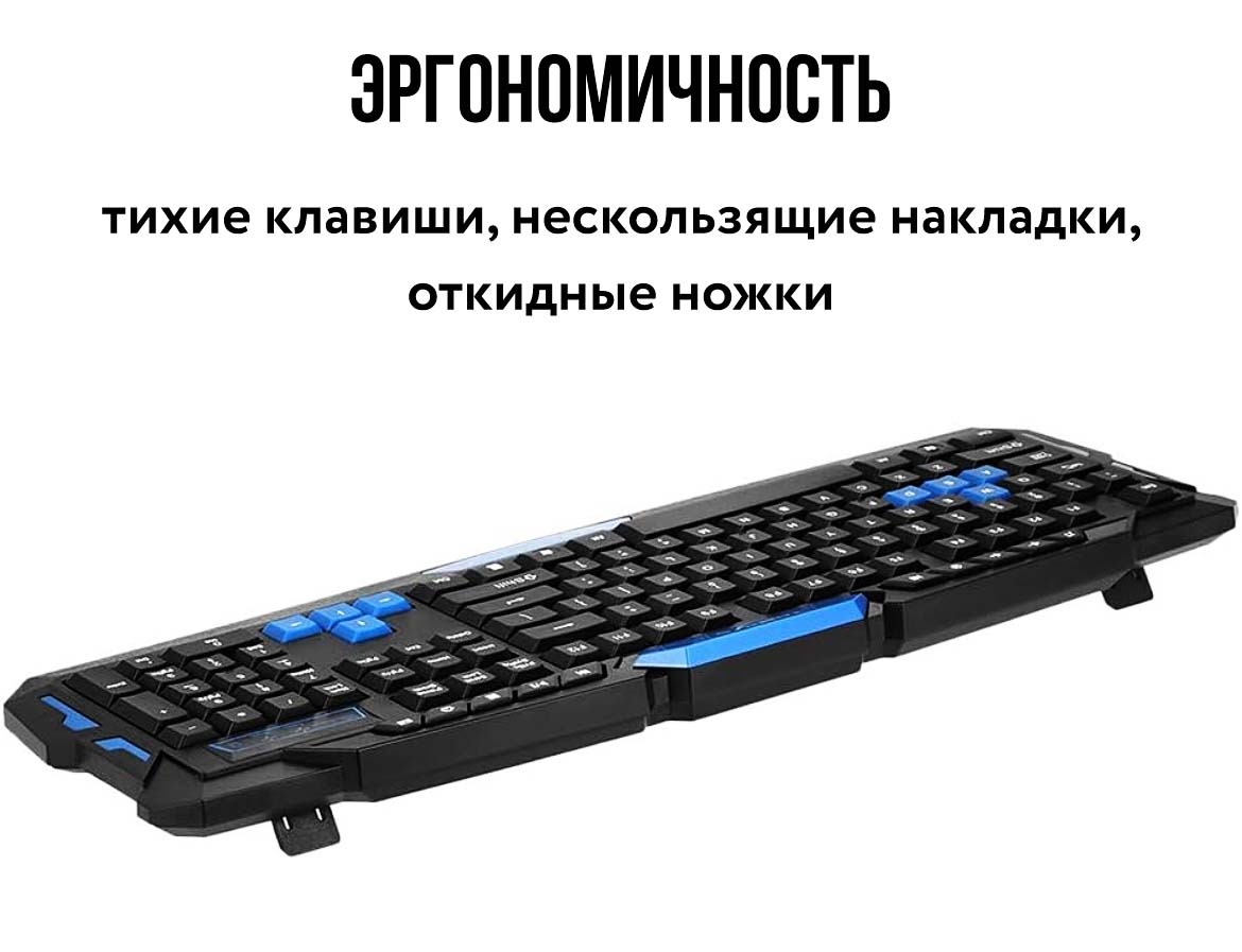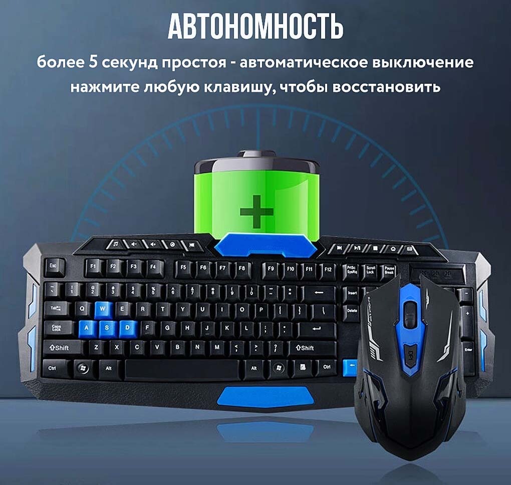 Беспроводная игровая клавиатура обеспечивает удобство и свободу движений во время игры. Она имеет эргономичный дизайн, позволяющий играть длительное время без усталости. В комплекте идет мышь, которая также беспроводная и адаптирована для геймеров, что дополняет игровой комплект. Это идеальный набор для любителей компьютерных игр, сочетающий стиль, функциональность и комфорт.
