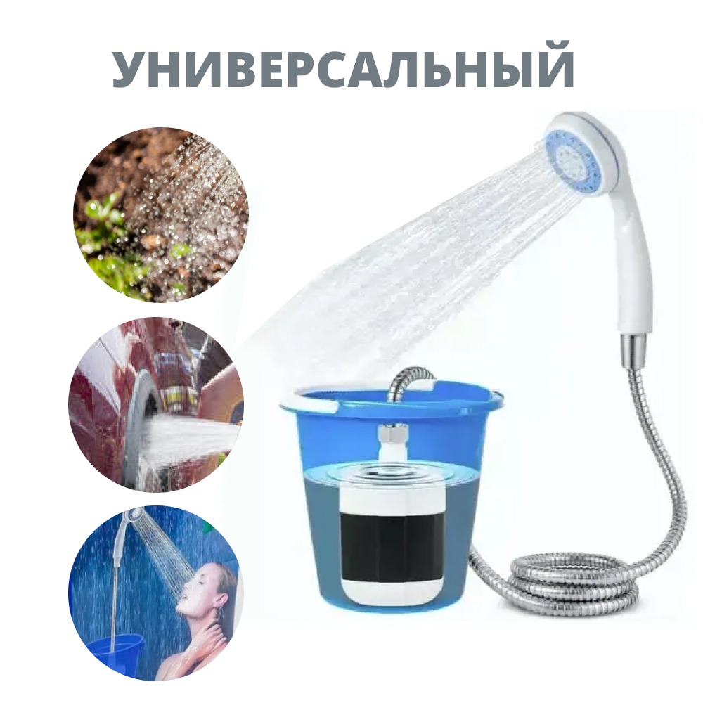 Портативный душ Travel shower - отличное решение при путешествии, далеком от цивилизации. Он легкий и компактный, но невероятно практичный и мало чем отличается от домашнего душа. Давление воды, по мощности напоминающее поток из крана, поможет вам сохранить комфорт от чистоты и свежести. Устройство легко заряжается от автомобиля, повер-банка и ноутбука, благодаря USB-кабелю. Портативный душ с аккумуляторным насосом Travel shower пригодится и дома, и на природе!