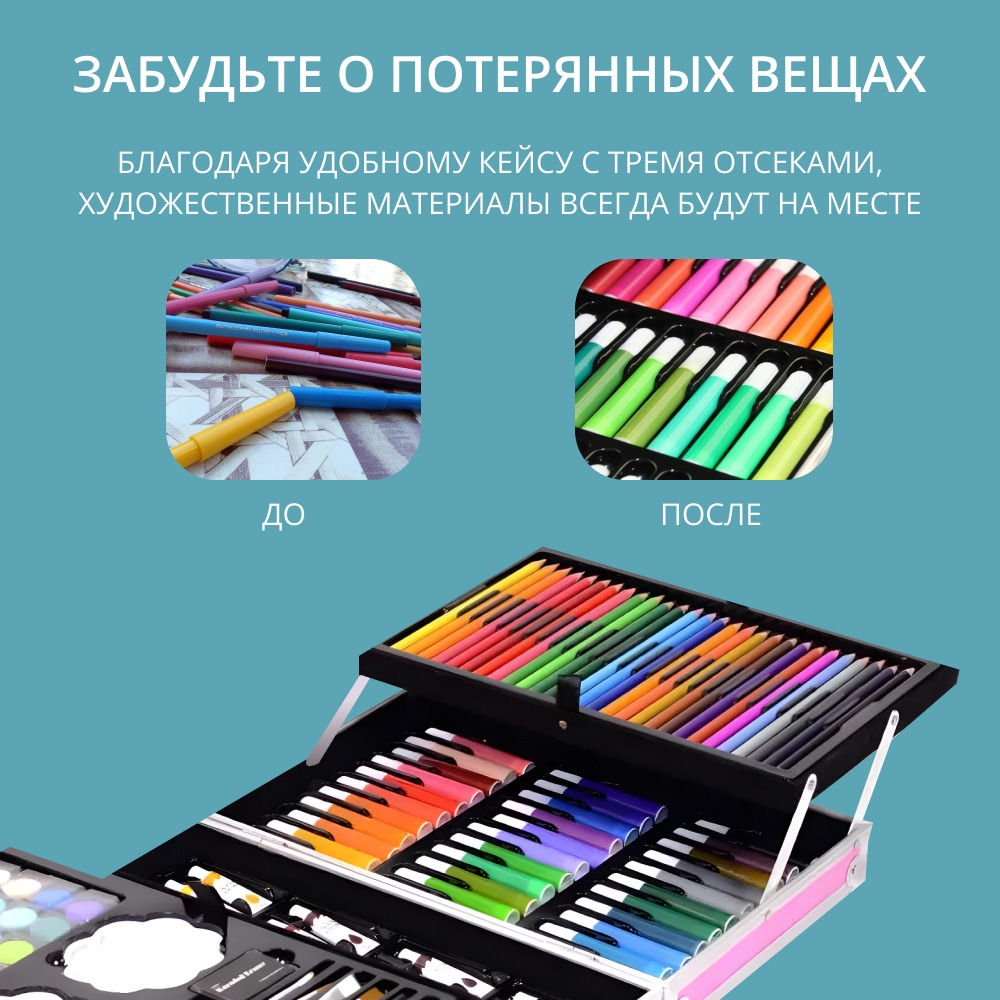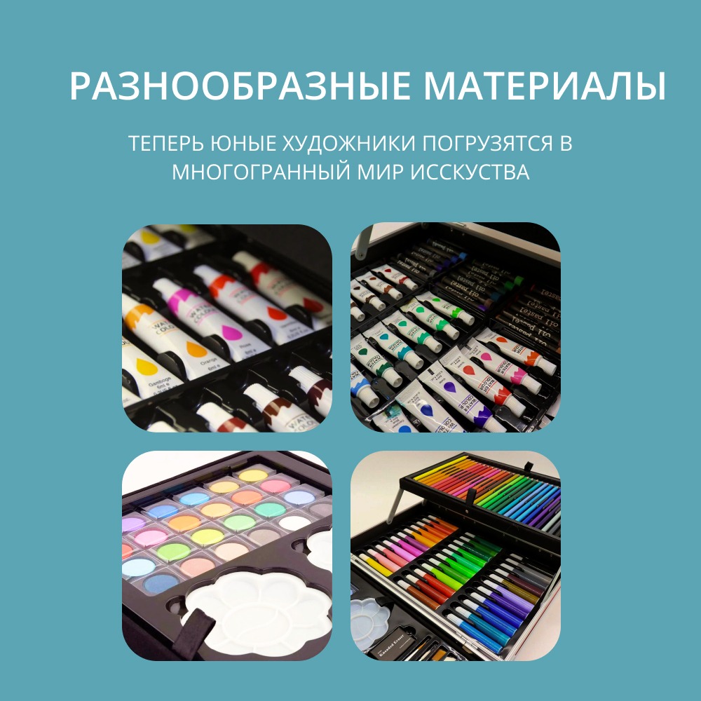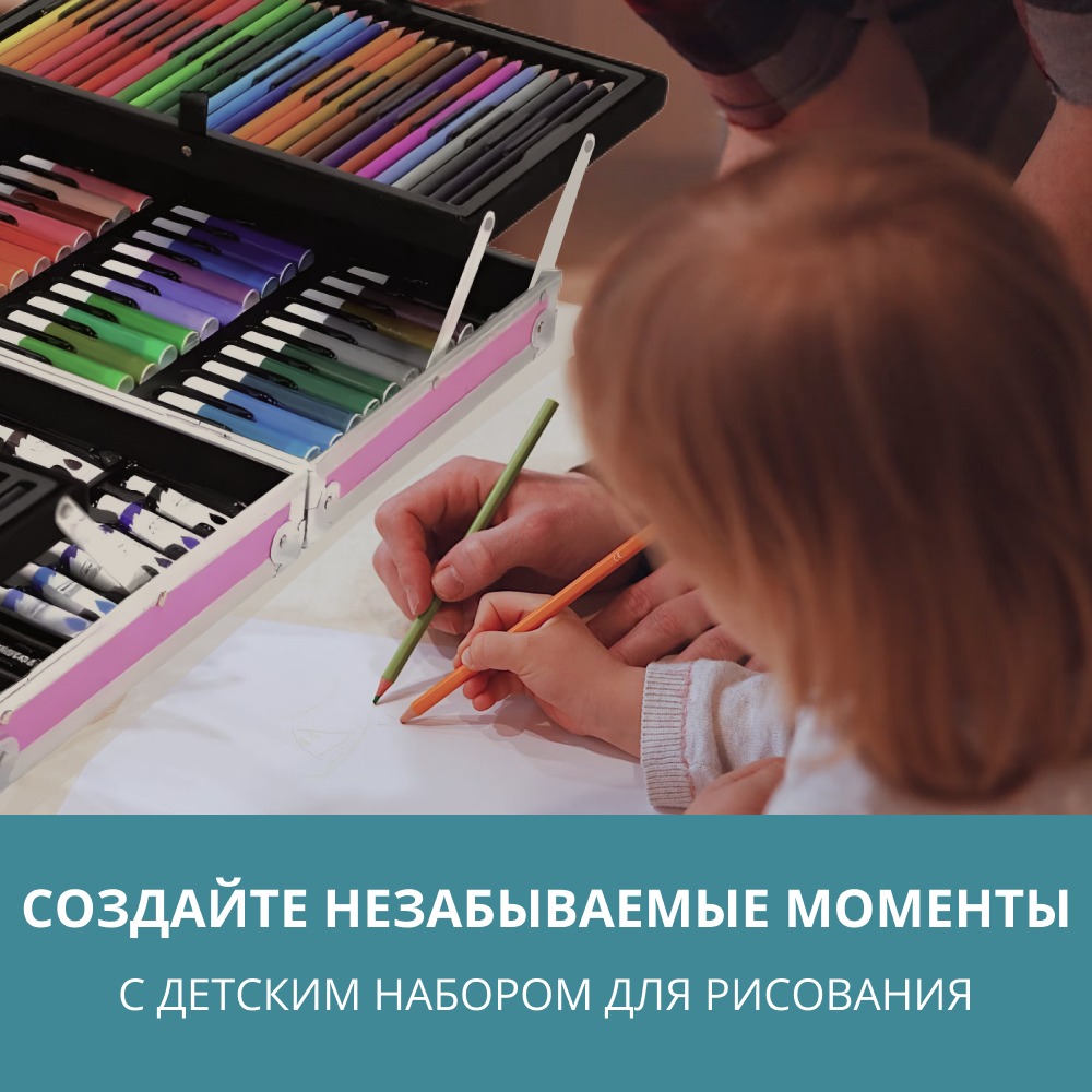 Набор-чемоданчик для детского творчества на 145 предметов в алюминиевом кейсе «Единорог» - это настоящая мастерская юного художника! В художественном наборе вы найдете все необходимое для создания рисунков и художественных картин: широкую палитру фломастеров и карандашей, масляных красок и пастели, акварельных красок, а также множество аксессуаров и полезных мелочей. Материалы хранятся в удобном алюминиевом чемодане, что облегчает хранение. Он имеет закругленные уголки, которые спасают от деформации кейса при падении. Два замочка надежно закрывают чемоданчик и предотвращают случайное открытие, что позволяет брать набор с собой в путешествия или посещать художественные занятия. Благодаря большому количеству разнообразных материалов, дети могут экспериментировать с различными техниками, ведь внутри набора находится все, что нужно для детского творчества: карандаши, краски, фломастеры, пастельные мелки, краска в тюбиках, кисточки, ластик и точилка. Все это вмещается в чемоданчик благодаря трем отсекам, два из которых выдвигаются. Каждый компонент имеет свое место, в котором они аккуратно и прочно закреплены. Детский набор для рисования в чемодане является идеальным комплектом для стимулирования творчества и развития художественных способностей у детей. Он подойдет не только для начинающих, но и для опытных художников. ![]() ![]() ![]() ![]() ![]()