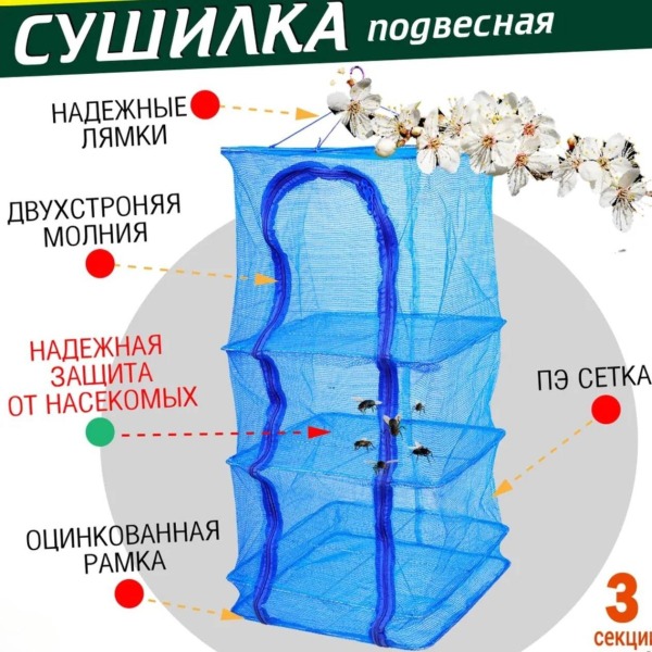 Удобная складная сетка для сушки разных продуктов. Компактная и удобная в использовании.