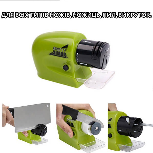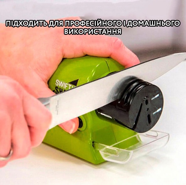 Точилка для ножів та ножиць на батарейках Swifty Sharp призначена як для домашнього, так і професійного використання.