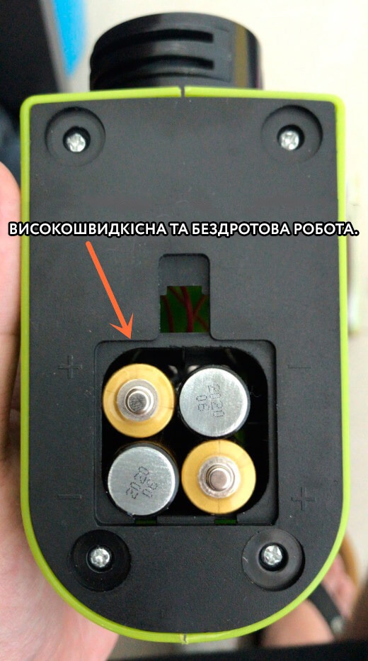 - Живлення: 4 батареї АА (не йдуть в комплекті)