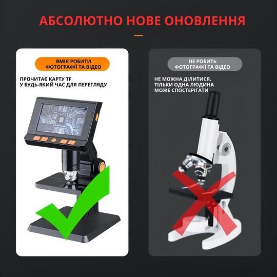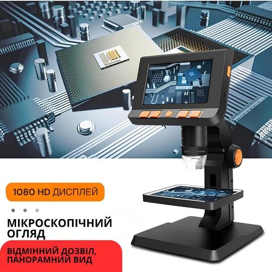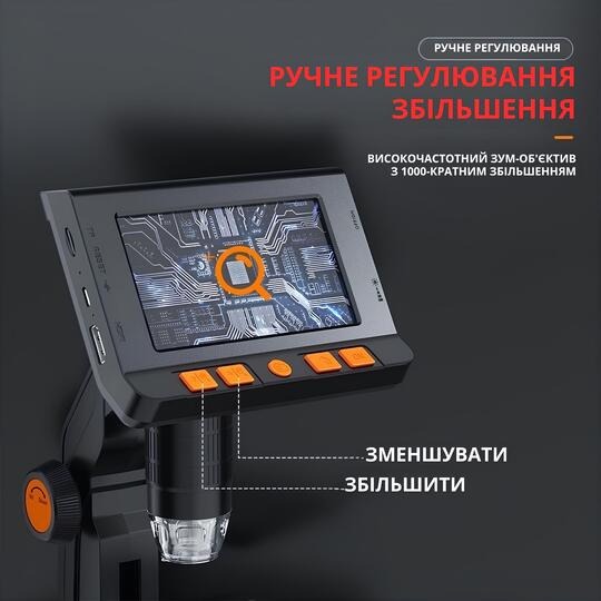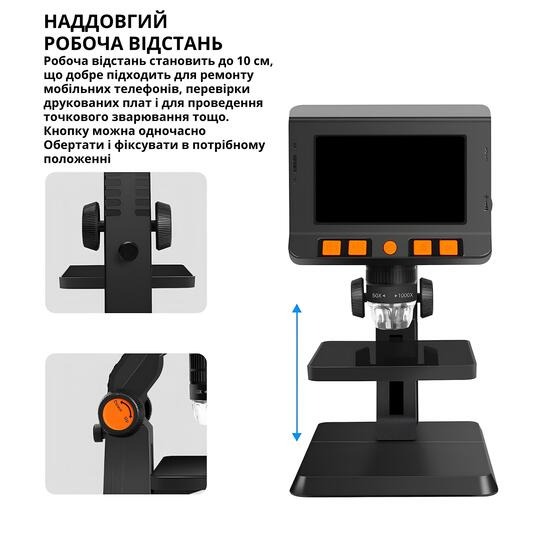 - 4,3-дюймовий РК-екран: цей цифровий мікроскоп оснащений 4,3-дюймовим екраном для перегляду відео в реальному часі, запису відео та захоплення зображень.