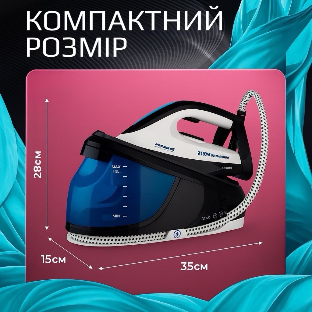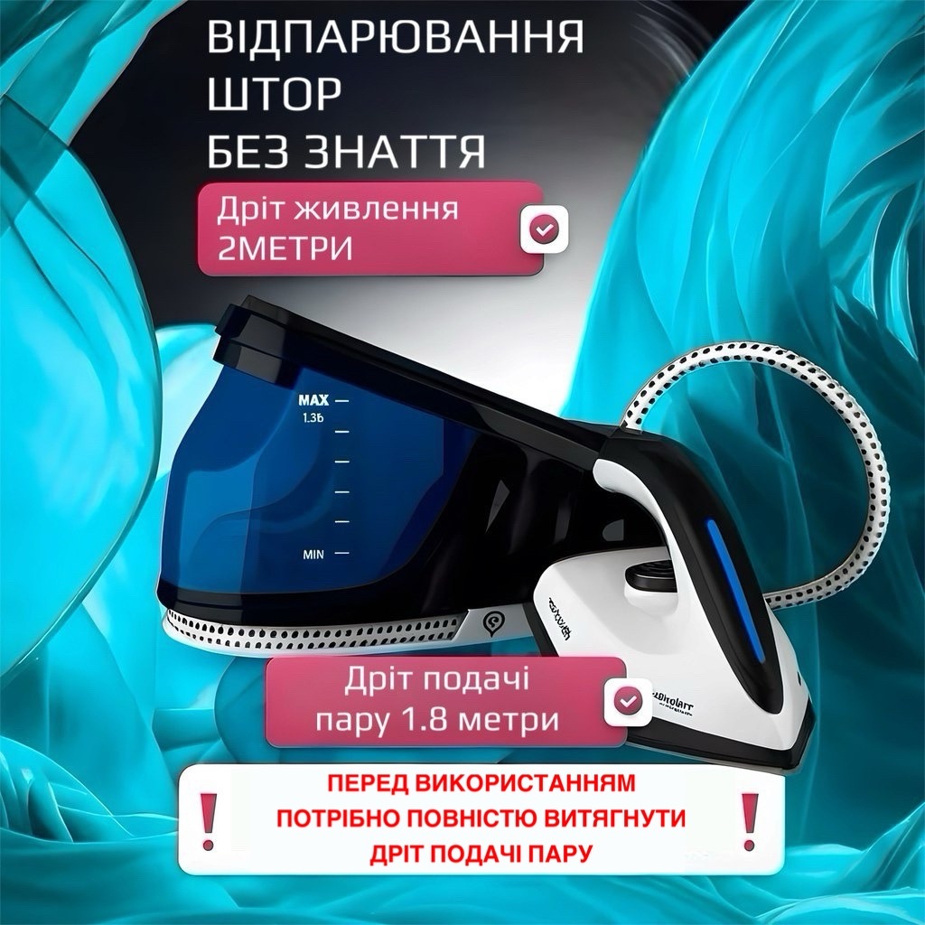 Потужний парогенератор для дому 3100 Вт з резервуаром 1,5 л та антипригарною керамічною поверхнею