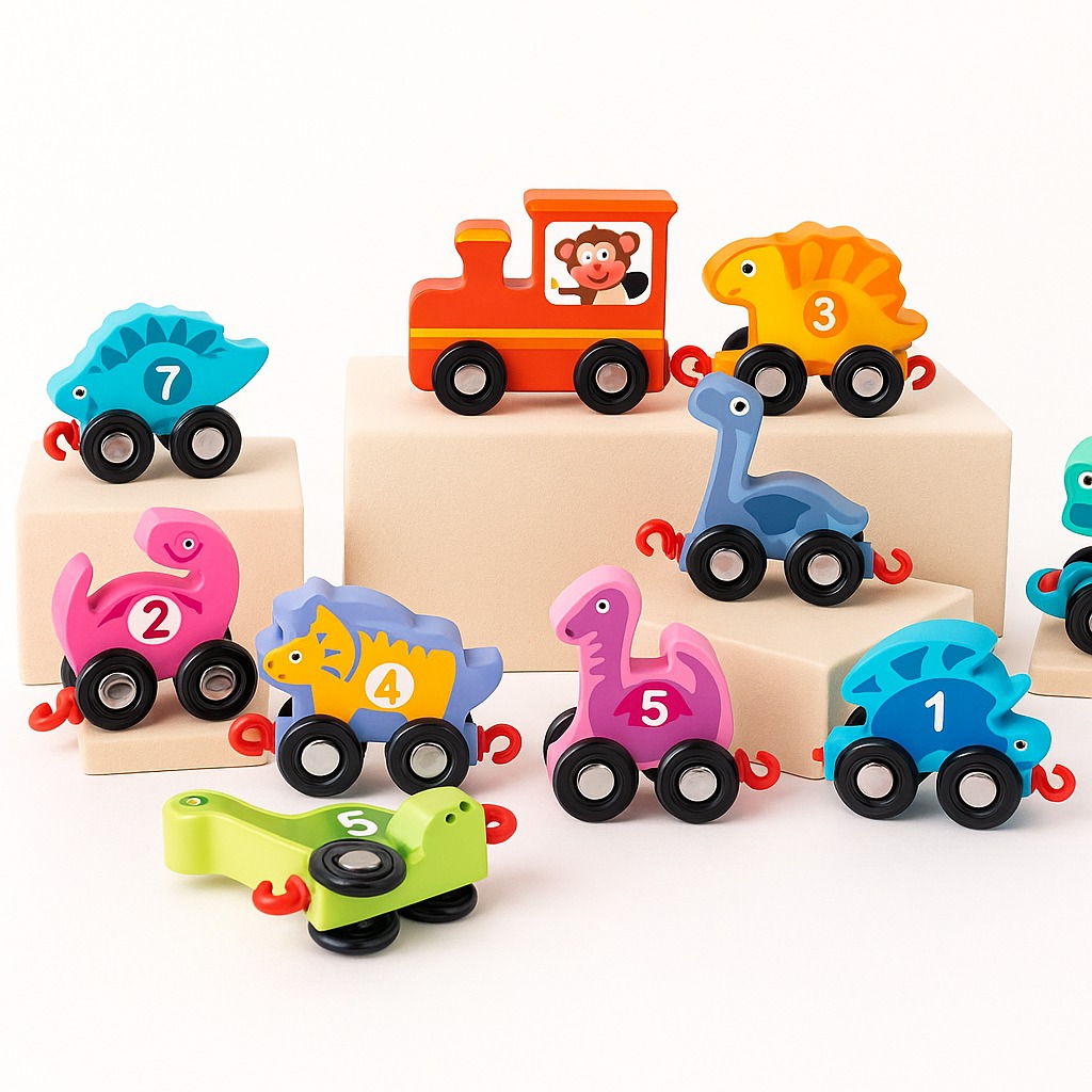10 вагончиків із динозаврами та цифрами від 1 до 10