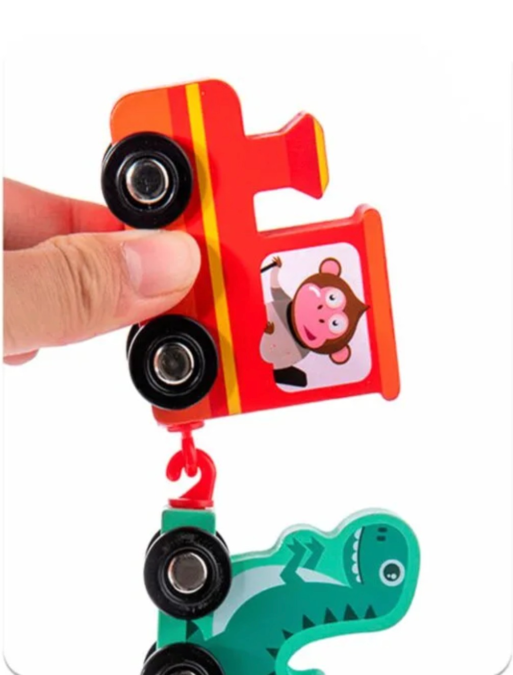 Дерев’яний паровозик із вагончиками у формі яскравих динозаврів стане улюбленою іграшкою вашої дитини!