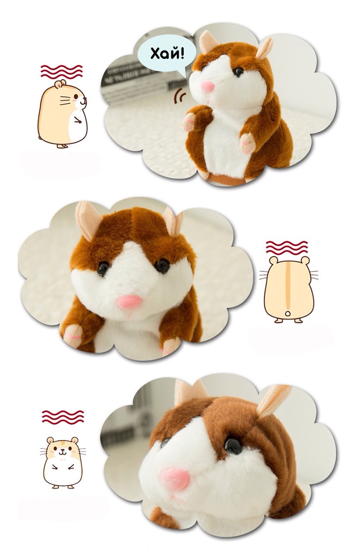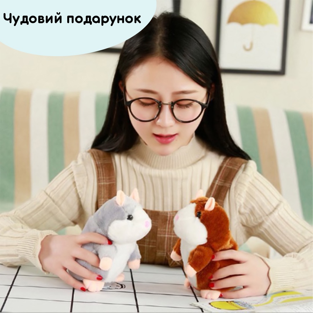 М'яка іграшка-хом'ячок, який повторює всі звуки, стане чудовим компаньйоном для дітей та дорослих. Він оживляє гру, додаючи елементи веселощів та взаємодії забезпечуючи безліч веселих моментів та посмішок. Ідеальний подарунок для всіх любителів кумедних та товариських тварин!