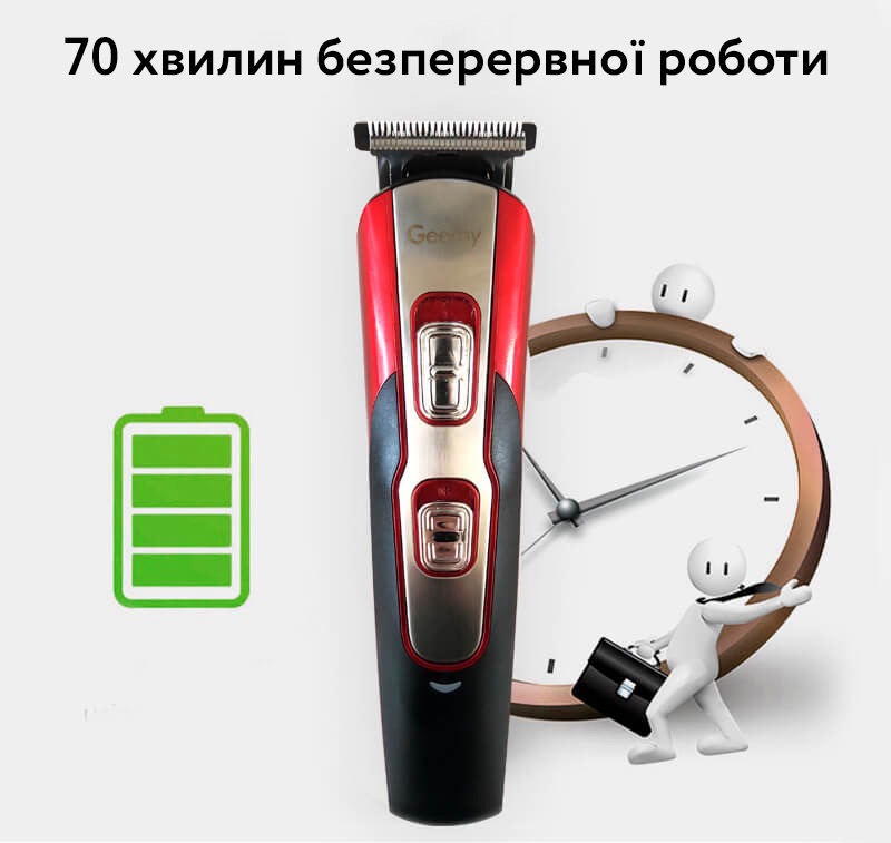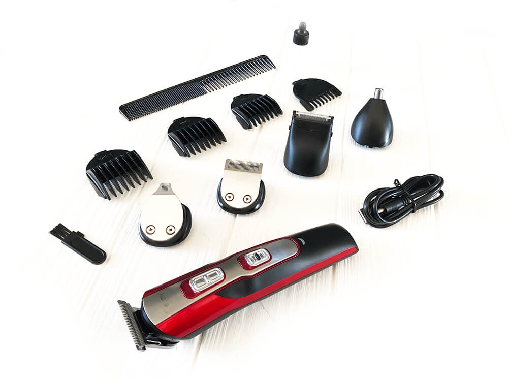 | Комплектація | Чотири насадки для стрижки (3 мм, 6 мм, 9 мм, 12 мм), Насадка триммер для носа та вух, Насадка триммер для бороди, Насадка бритва для бороди ,Кабель зарядки, Щітка для очищення, Підставка, Гребінець, Мастило |