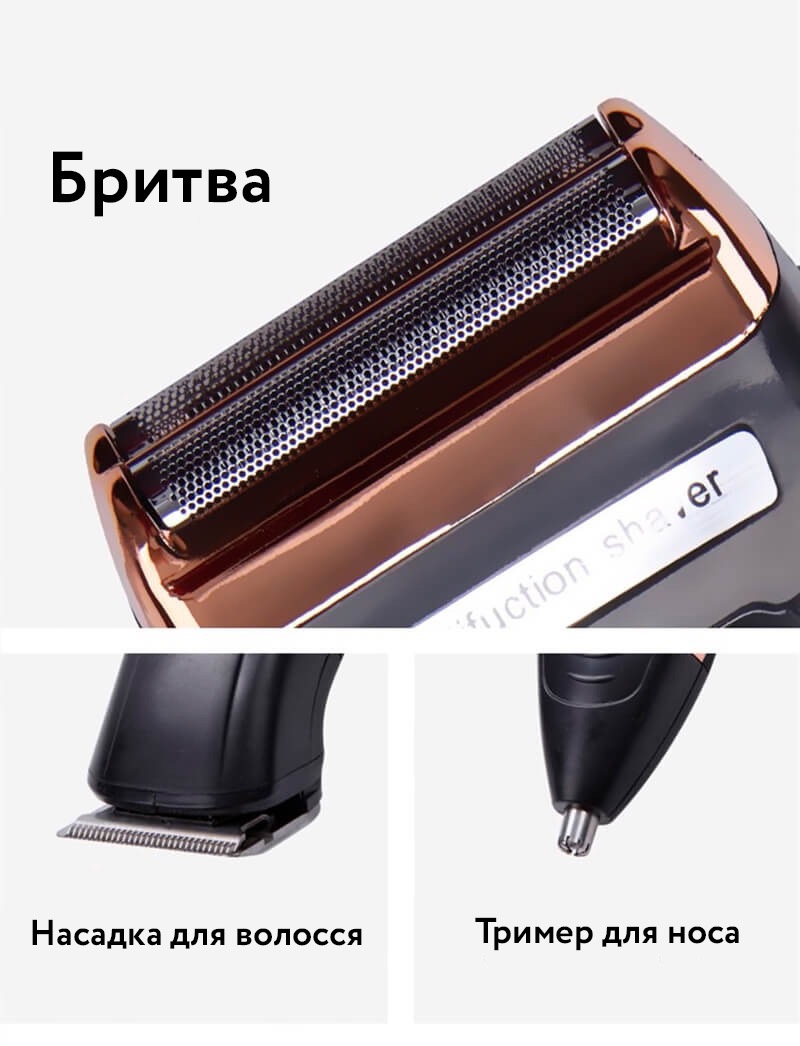 Компактний та простий у використанні, Леза з нержавіючої сталі, Виконує функцію машинки для стрижки, бритви та тримера одночасно - 10в1.