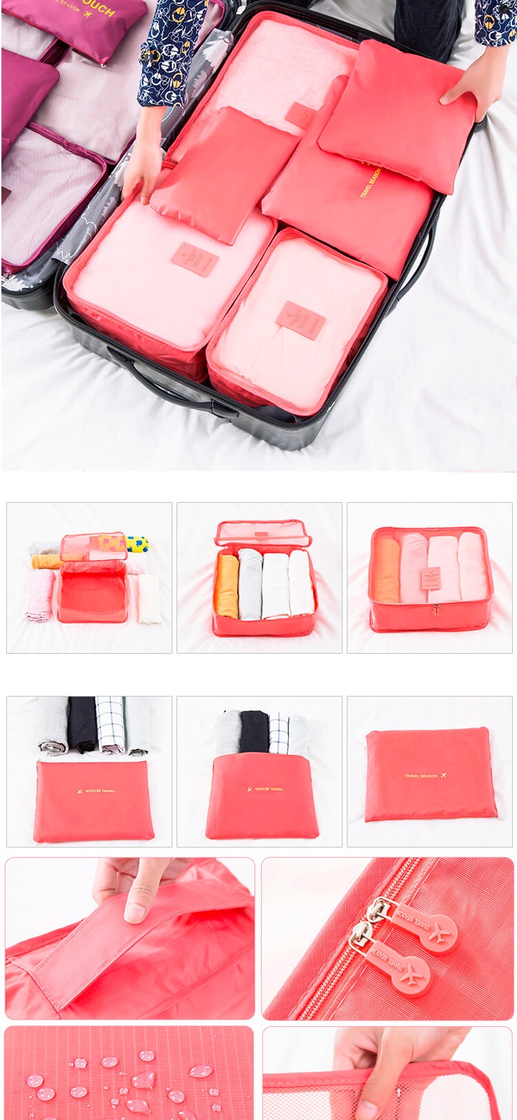 Набір 6в1 ідеальне рішення для зберігання речей, білизни та косметики. Виготовлений із водонепроникної тканини, він захищає від вологи та забруднення. Допоможе підтримувати порядок у вашій подорожі або вдома. Стильний дизайн та функціональність роблять його чудовим вибором для активних людей!