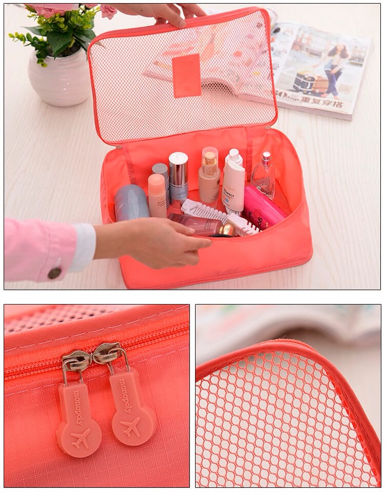 Набір дорожніх сумок-органайзерів із якісного непромокального матеріалу нейлону.Зручно використовувати як для подорожей, так домашнього зберігання.