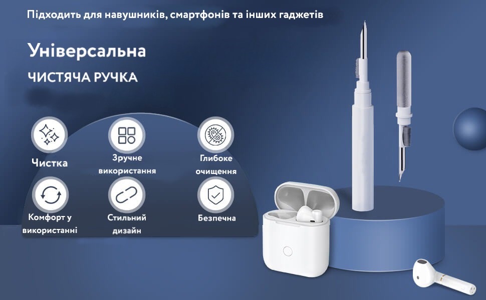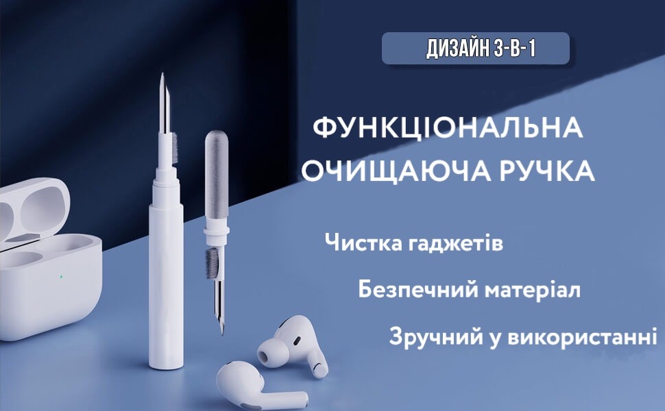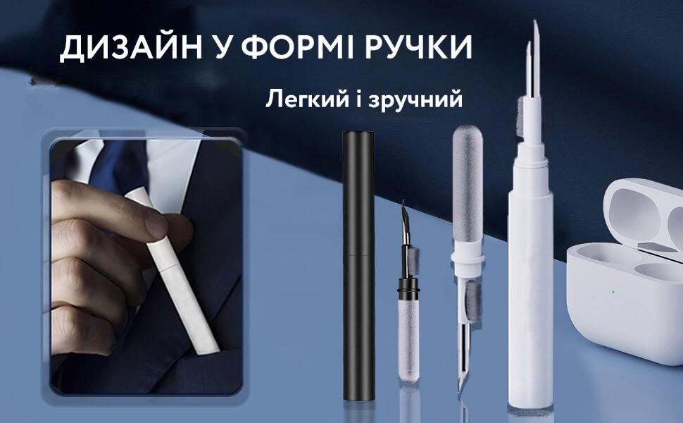 Чистилка – незамінний аксесуар для підтримки чистоти ваших гаджетів. Вона ефективно видаляє бруд, пил та наліт з навушників, зарядних пристроїв, клавіатур, екранів смартфонів та планшетів. Компактний та зручний дизайн дозволяє легко брати її з собою, а м'які щіточки та спеціальні насадки забезпечують дбайливе чищення. Простота у використанні робить її ідеальним рішенням для регулярного догляду.