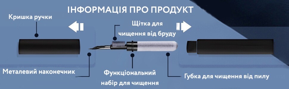 Чистяча ручка для гаджетів виготовлена з міцних матеріалів, що забезпечує тривалий термін експлуатації аксесуара. Завдяки продуманій конструкції аксесуар надає доступ до важкодоступних місць, гарантуючи повноцінне очищення та цілісність електронних компонентів пристрою. Компактні розміри і легка вага ручки, що чистить, передбачають комфорт і ергономічність у використанні.