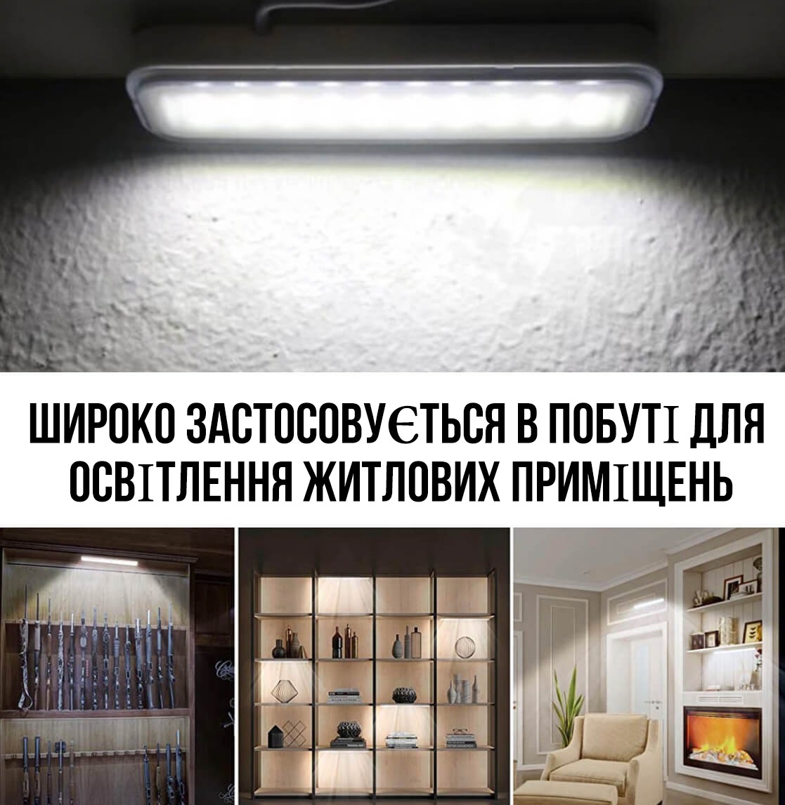 Застосовується для аварійного освітлення у разі загального відключення електричної енергії у будівлі, будинку тощо. Виріб має компактні розміри, легкий пластиковий корпус, вбудований акумулятор, економічні та довговічні світлодіодні лампи та перемикач режимів роботи.