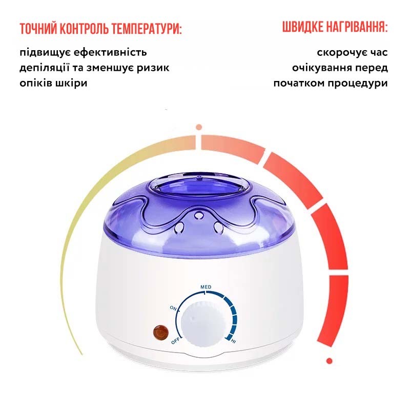 Зручний та універсальний воскоплав для воску з терморегулятором, підходить для професійного та домашнього використання. Призначений для розігріву воску в банках (400 мл), таблетках, гранулах, дисках. Температура розігріву від 35 до 100 градусів, а також є режим, який підтримує задану температуру воску протягом усієї косметичної процедури.
