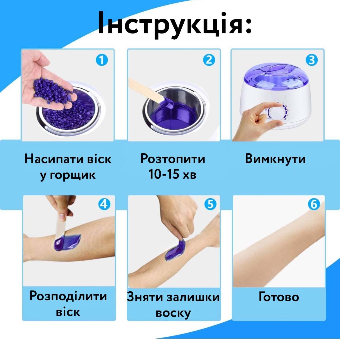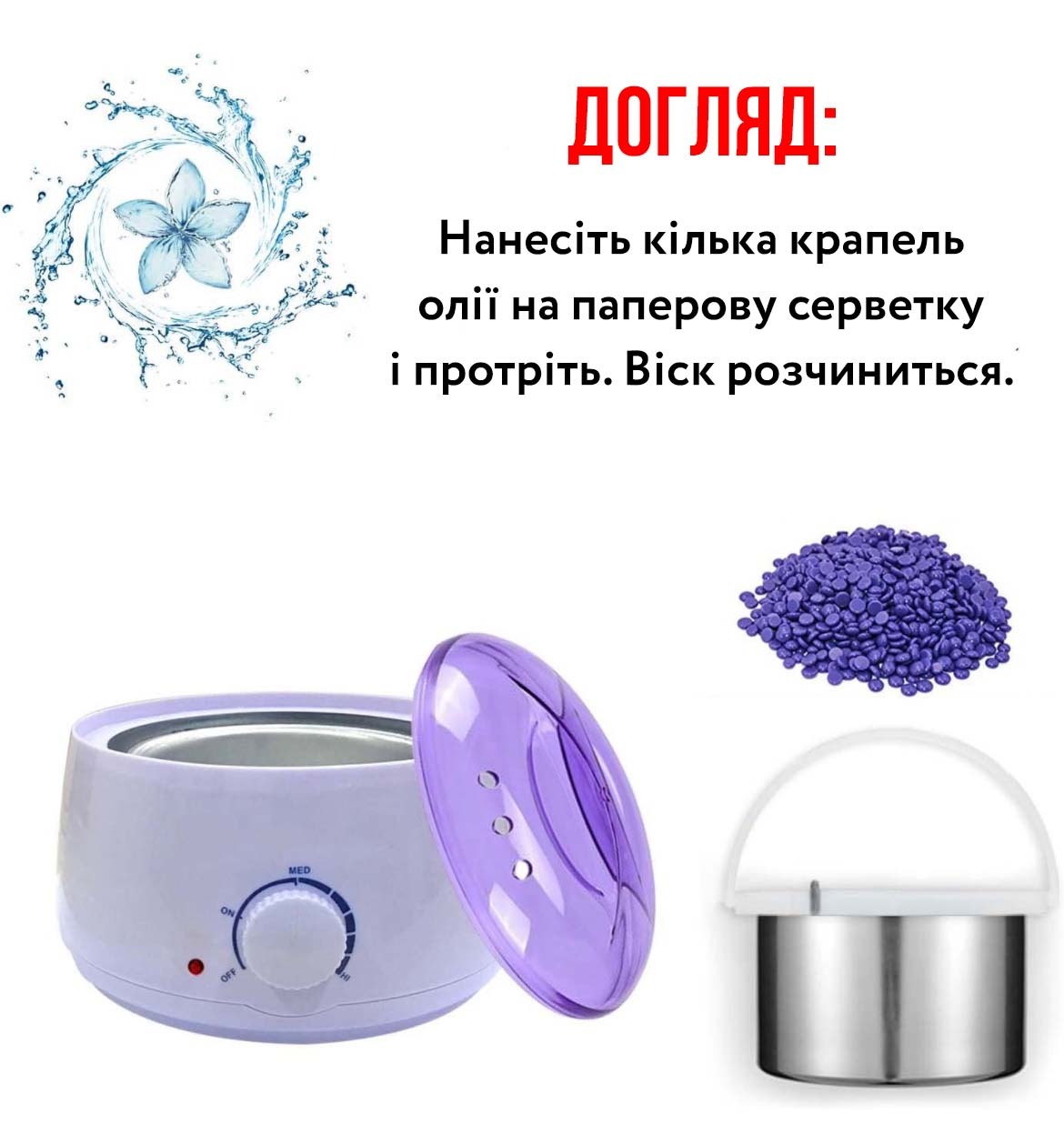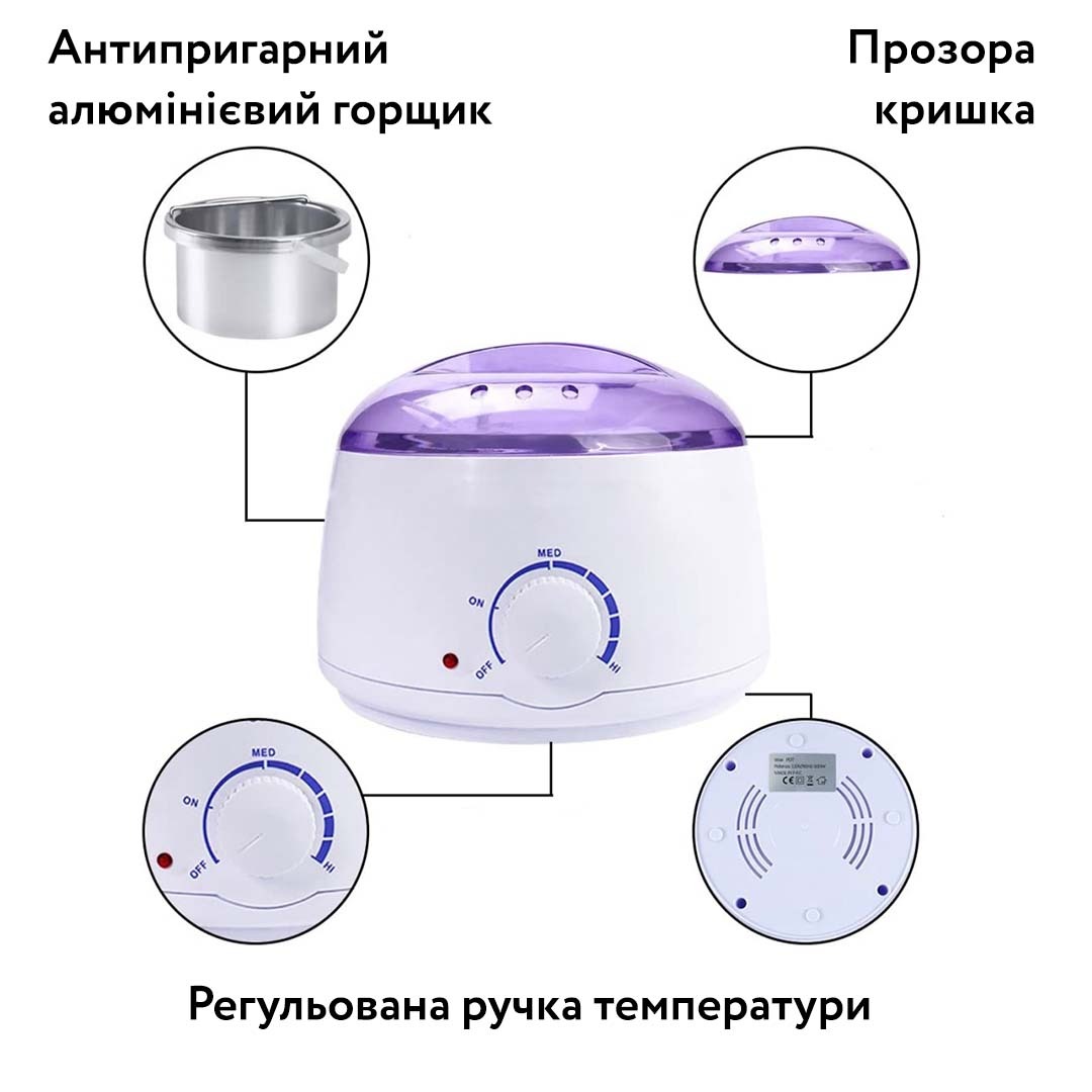 | Призначення | Для розігріву воску в банках (400 мл.), в таблетках, в гранулах, в дисках |