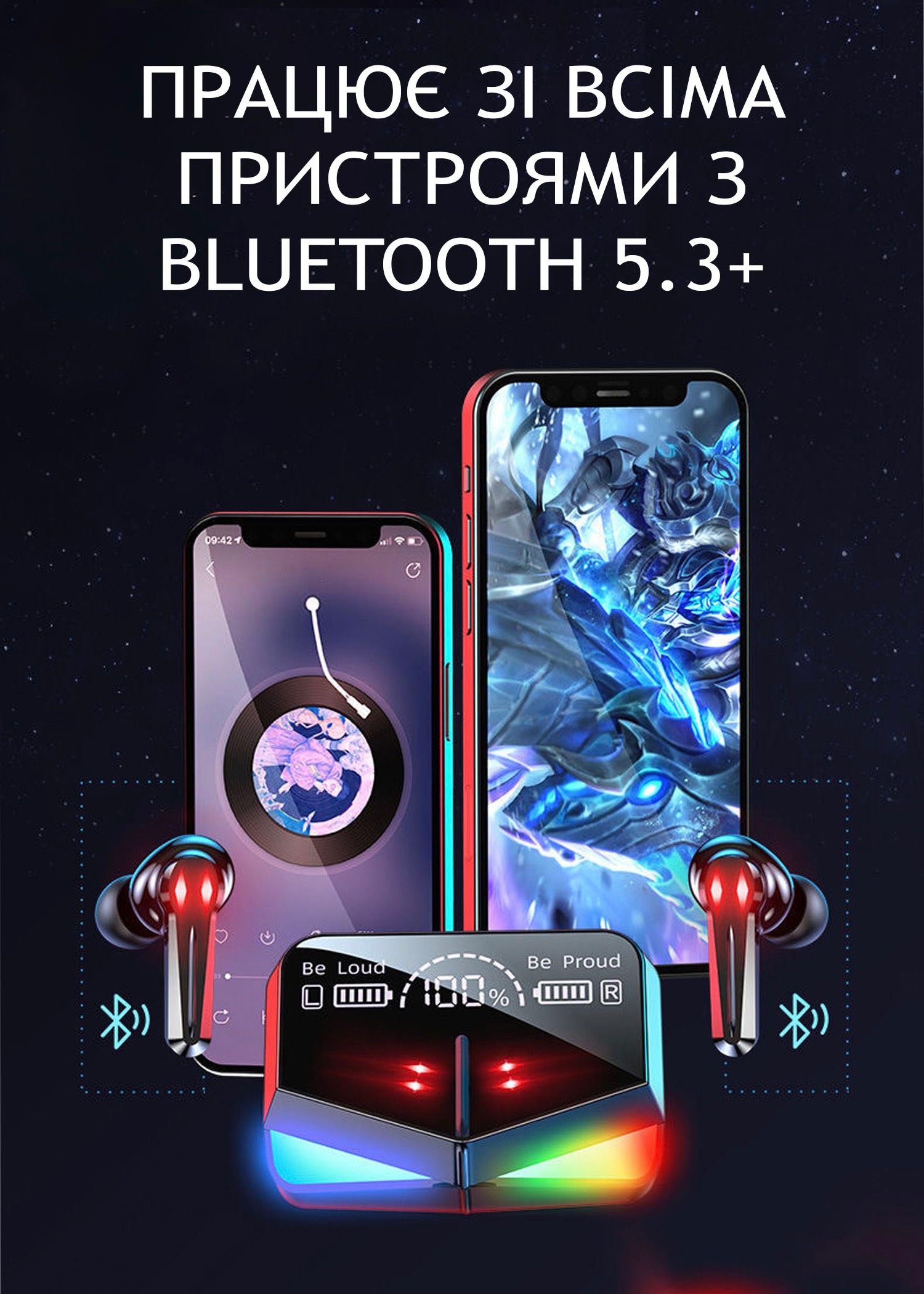 Bluetooth-навушники M28 підключаються до будь-яких пристроїв через Bluetooth 5.3, що забезпечує швидке і надійне з'єднання. Це особливо важливо для геймерів, оскільки це зменшує затримку передачі та забезпечує плавний ігровий процес.