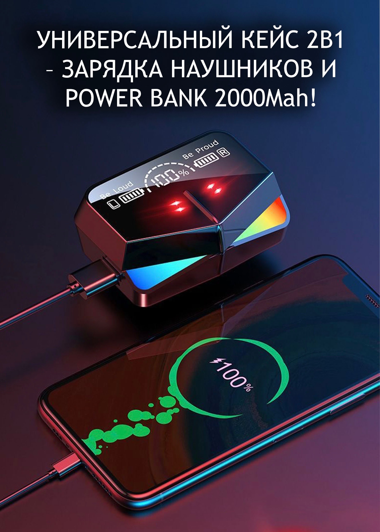 Безпровідні ігрові навушники M28 з зарядним кейсом та функцією PowerBank.