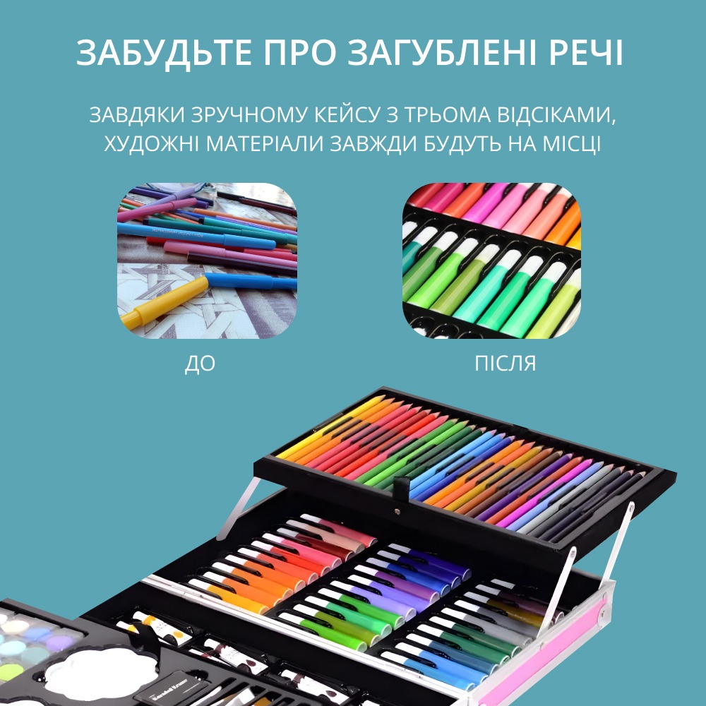 Дитячий набір для малювання у валізі є ідеальним комплектом для стимулювання творчості та розвитку мистецьких здібностей у дітей. Він підійде не тільки для початківців, але й для досвічених художників.